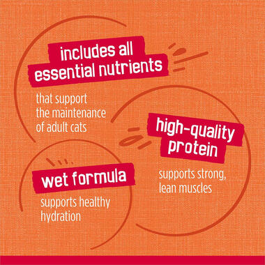 - This adult cat food is packaged in recyclable cans and checked for quality and safety