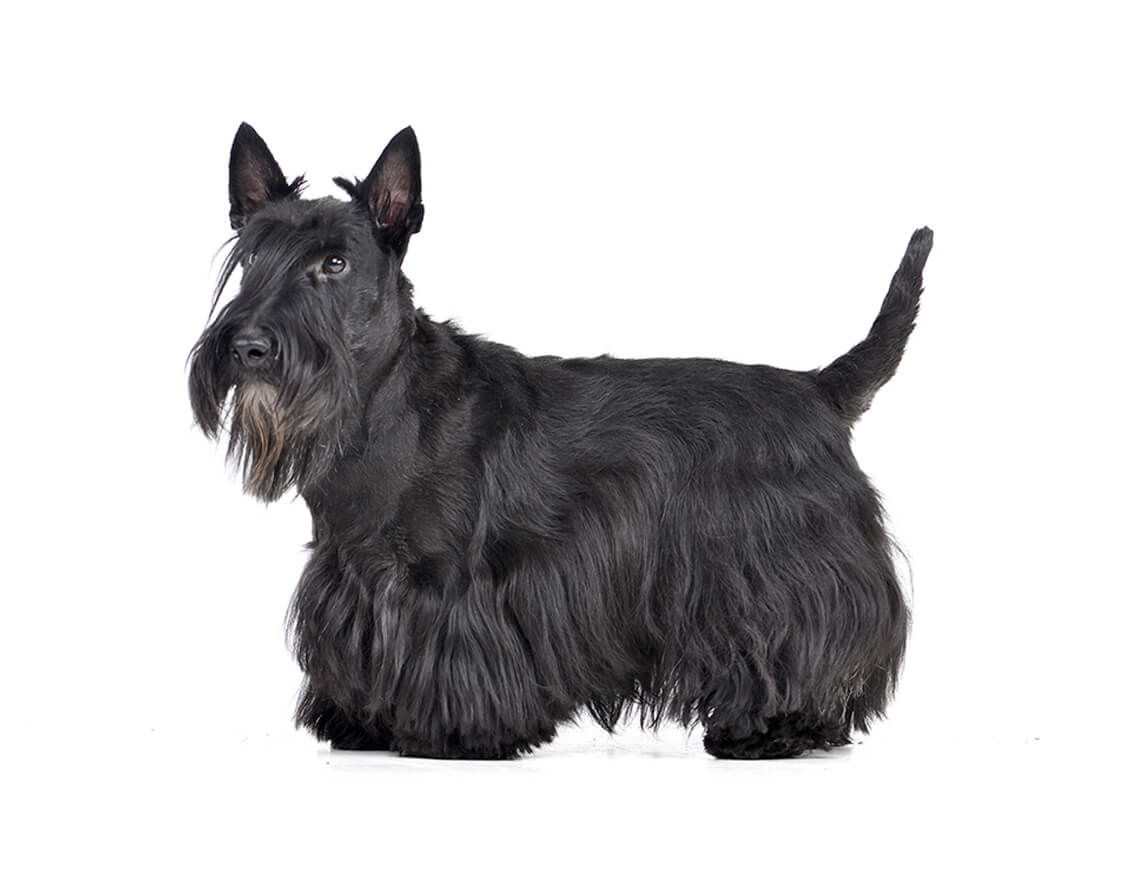 سكوتش تيرير كلب صغير الحجم، مضغوط لكنه قوي. له فرو خشن وسلكي مقاوم للعوامل الجوية. تُبرز حواجبه البارزة ولحيته وشنبته، إلى جانب أذنيه المدببتين المرفوعتين مظهرًا يقظًا وعمليًا.