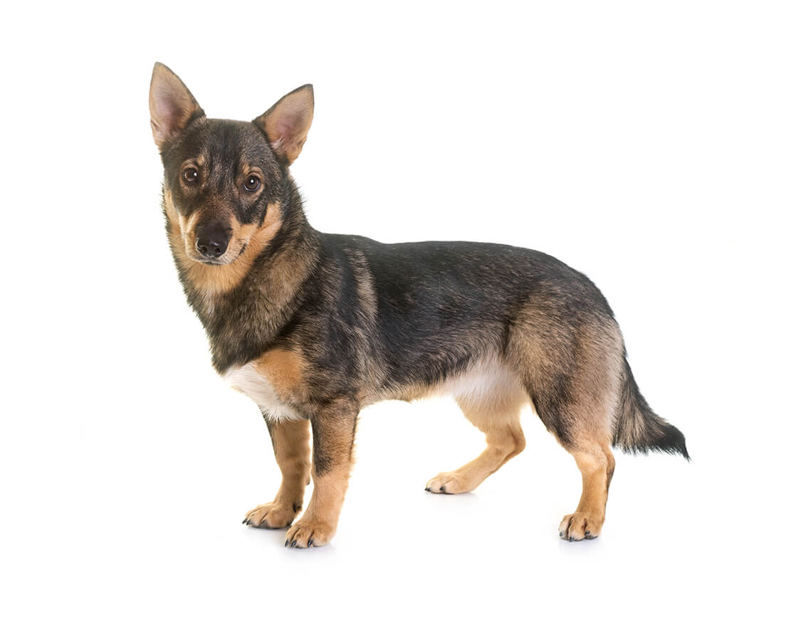 كلب سويدي فالهوند من نوع سبريتز، قصير الأرجل وقوي البنية. طوله أطول قليلًا من ارتفاعه، وله وجه جذاب وذكي مع أذنين مدببتين وقويتين، وذيل كثيف الفرو يلتف بإحكام فوق الظهر. فراؤه قصير وكثيف، بألوان رمادي فولاذي، رمادي بني، رمادي أصفر، بني محمر، وأصفر محمر، مع تدرجات لونية عبر الجسم، أغمق على الكتفين والظهر، وأفتح على الخطم وتحت الكلب. تظهر أحيانًا علامات بيضاء صغيرة، لكنها لا يجب أن تتجاوز ثلث لون الكلب الكلي.