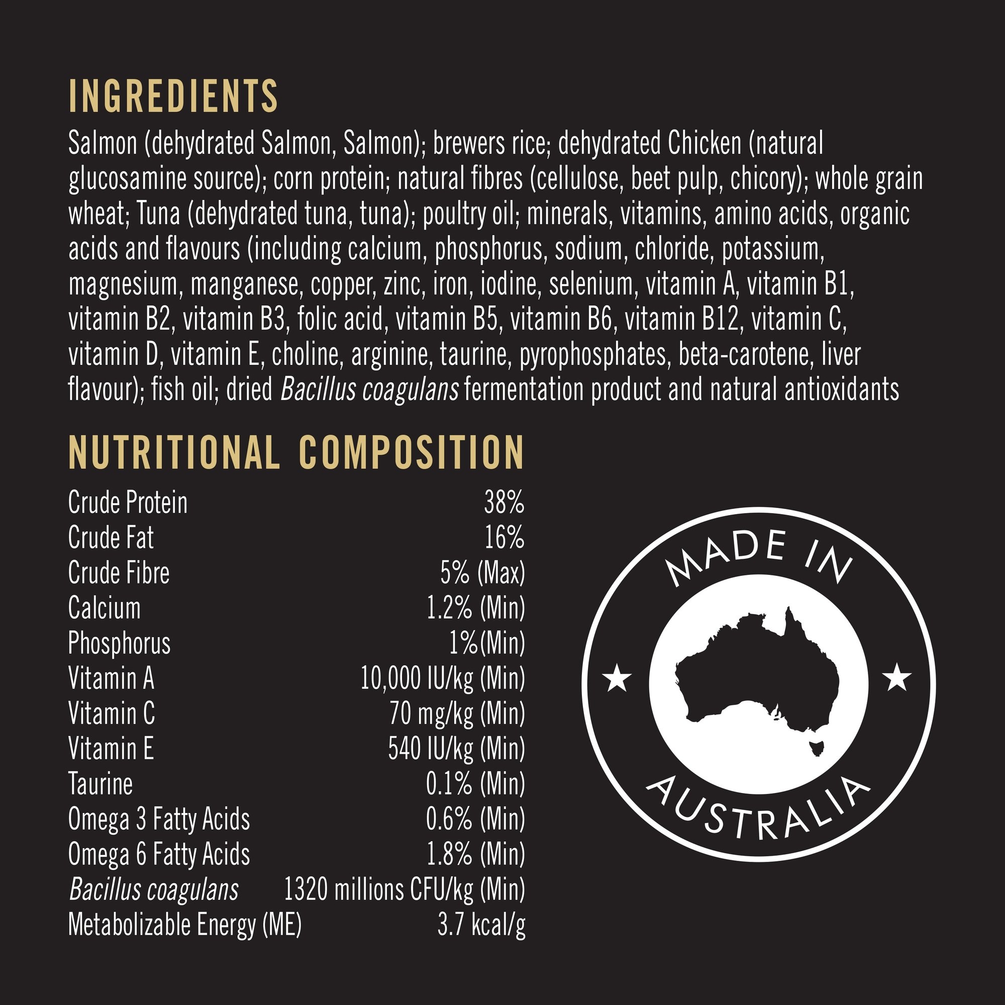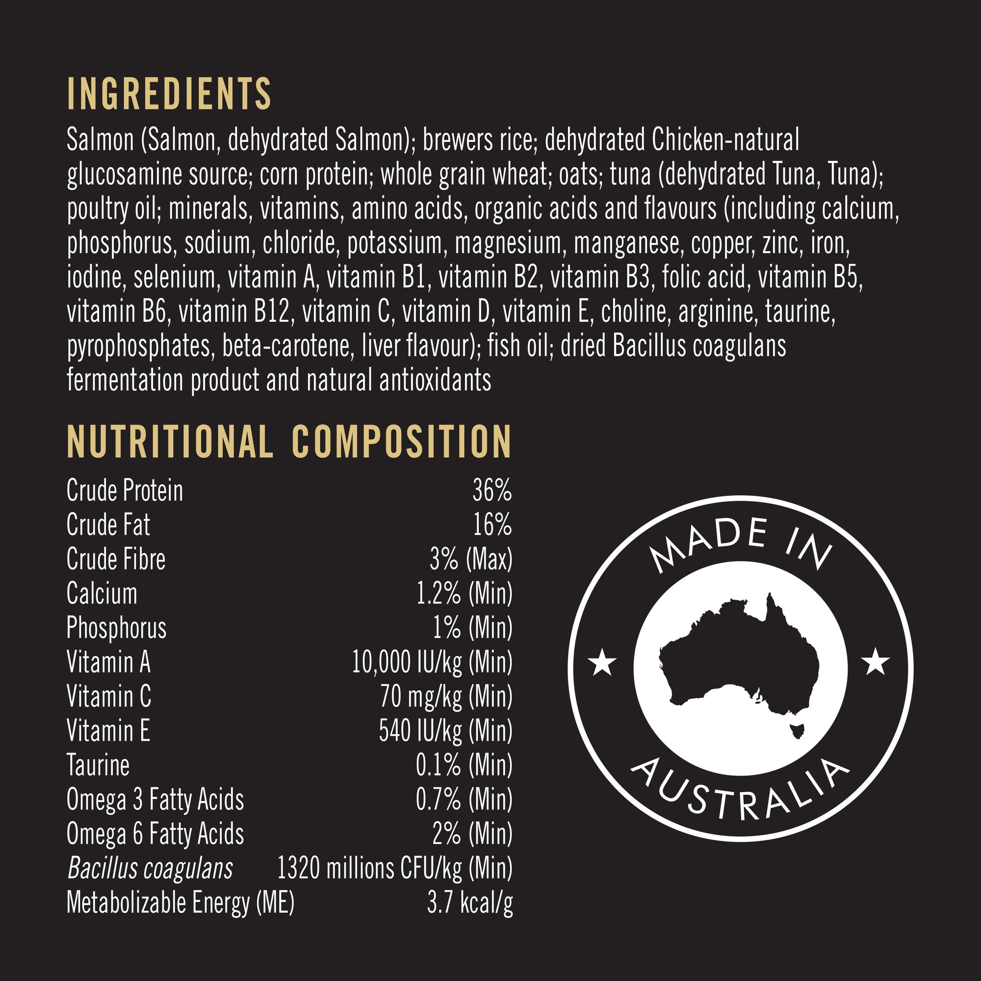 يجمع بروبلان® للقطط البالغه مع السالمون، بين جميع العناصر الغذائية الأساسية بما في ذلك فيتامينات A و C و E ، بالإضافة إلى أحماض أوميغا 3 و 6 الدهنية في نظام غذائي عالي الجودة للقطط.