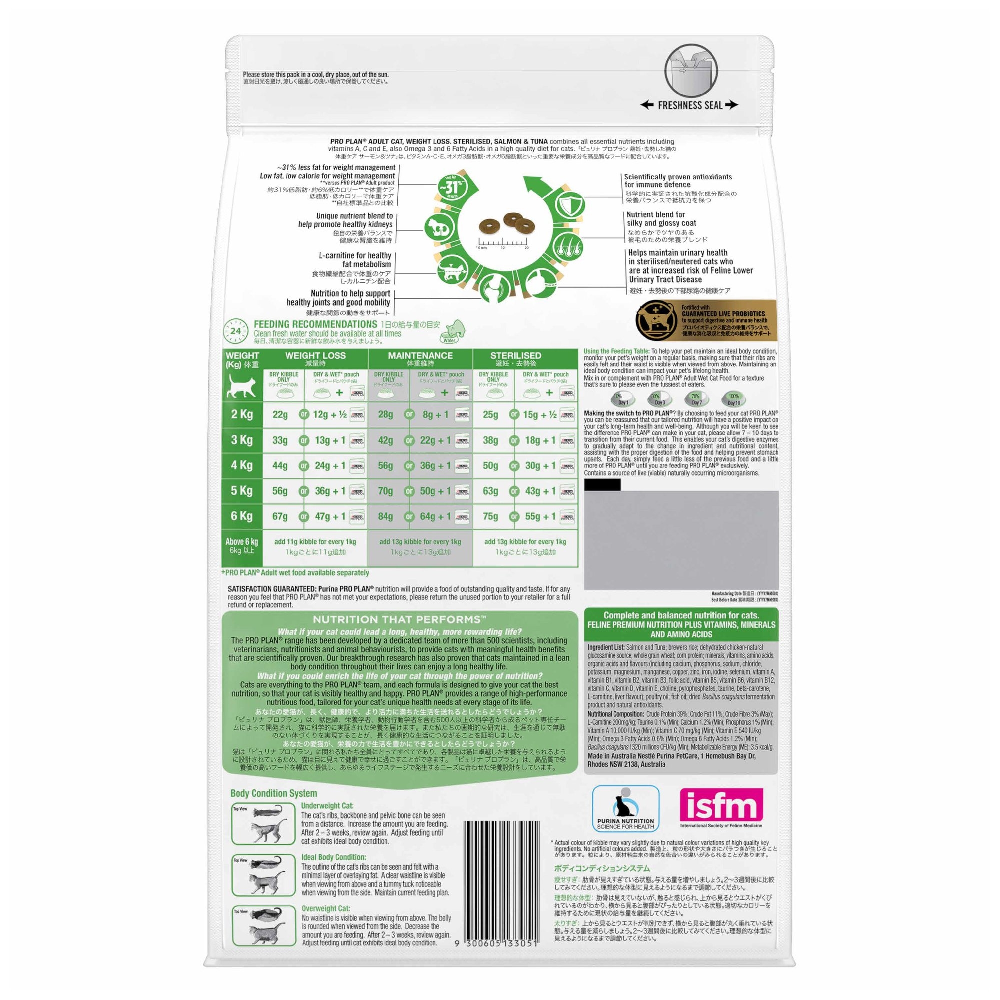 يجمع بروبلان® ، للقطط المعقمه لفقدان الوزن ، مع السالمون و التونه بين جميع العناصر الغذائية الأساسية بما في ذلك فيتامينات A و C و E ، بالإضافة إلى أحماض أوميغا 3 و 6 الدهنية في نظام غذائي عالي الجودة للقطط.