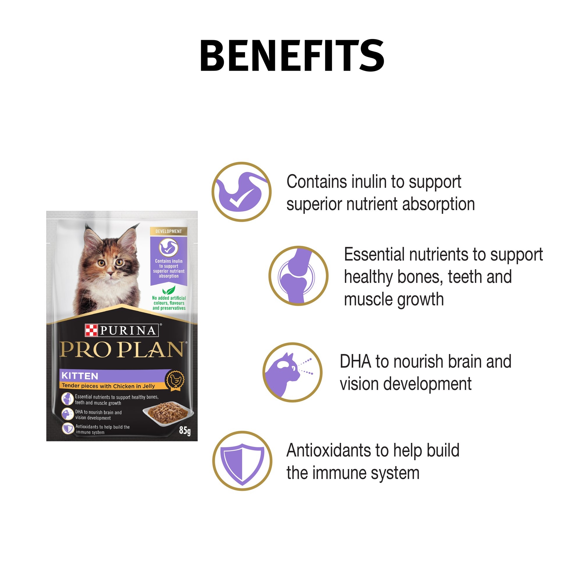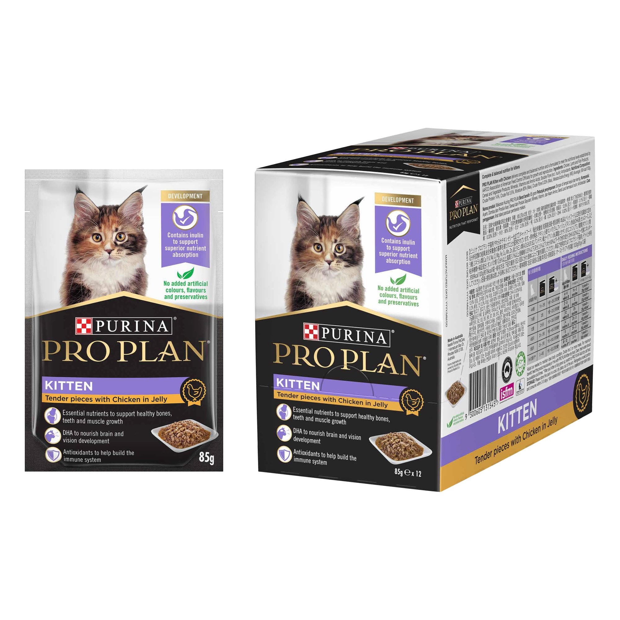 بروبلان® كيتن مع الدجاج في طعام القطط الرطب يوفر تغذية كاملة ومتوازنة وتمت صياغته لتلبية المستويات الغذائية التي وضعتها(رابطة مسؤولي مراقبة الأعلاف الأمريكية للنمو والتكاث (AAFCO