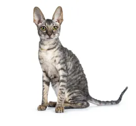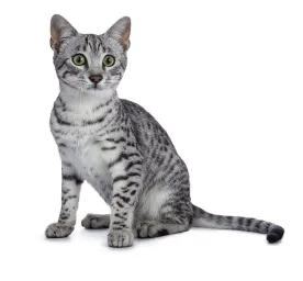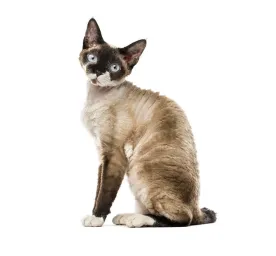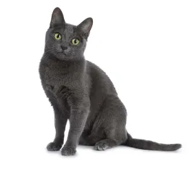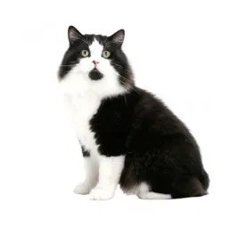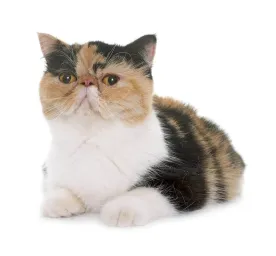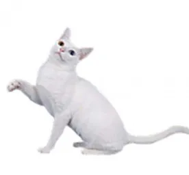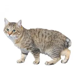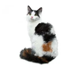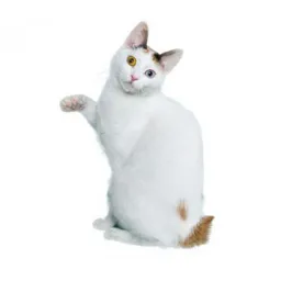 The Japanese Bobtail cat has elegant lines and well-developed musculature. The head is finely chiselled with large upright ears and large round eyes set at a pronounced slant. The tail, when carried normally, only extends about 5 to 8 cm. When the cat is relaxed, the tail is carried upright. The hair on the tail is generally thicker and longer than elsewhere and grows in all directions to create the effect of a pom-pom or bunny tail. Japanese Bobtail cats can be long or shorthaired. The coat is soft and silky and comes in many colours. The preferred colour in Japan is the tri-colour, or tortie and white (known as Mi-ke), a mixture of black, red, and white, which symbolises luck. This colouring is usually found only in females.