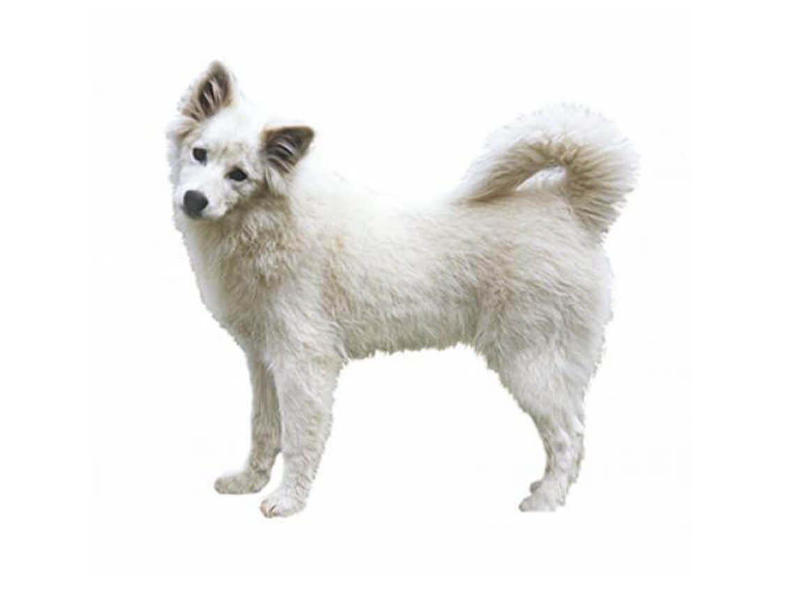 A large spitz-type dog, with a broad chest, thick coat, large bushy tail (that can be carried over the back) and erect ears, this is a striking, powerful dog that comes in black and white, grey and white, red and white, sable and white, and white and black. Males stand at 58-70cm and weigh 30-40kg when fully grown and females are 50-60cm tall and weigh 18-30kg.