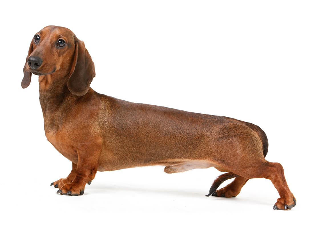 The standard, Smooth-Haired Dachshund breed is short – but not small! He is a medium-sized hound on short legs, standing at about 35cm and weighing 9-12kg when fully grown. He has an attractive, soft, straight coat that comes in a range of colours